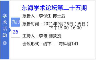 上一条:学院“揽月”教学沙龙第七期-一流本科专业建设与人才培养的思考与实践 下一条:东海学术论坛第二十四期-周磊研究员学术报告