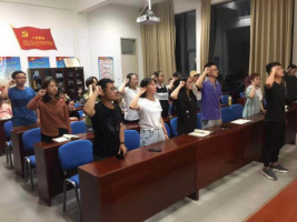 紧接着Y18海科党支部书记陈超带领研究生党员郑重地宣读了入党誓词,坚定入党信念,并组织自学了《中国共产党章程》、《习近平新时代中国特色社会主义思想学习纲要》、《习近平“不忘初心、牢记使命”论述摘编》中有关政治建设的内容。