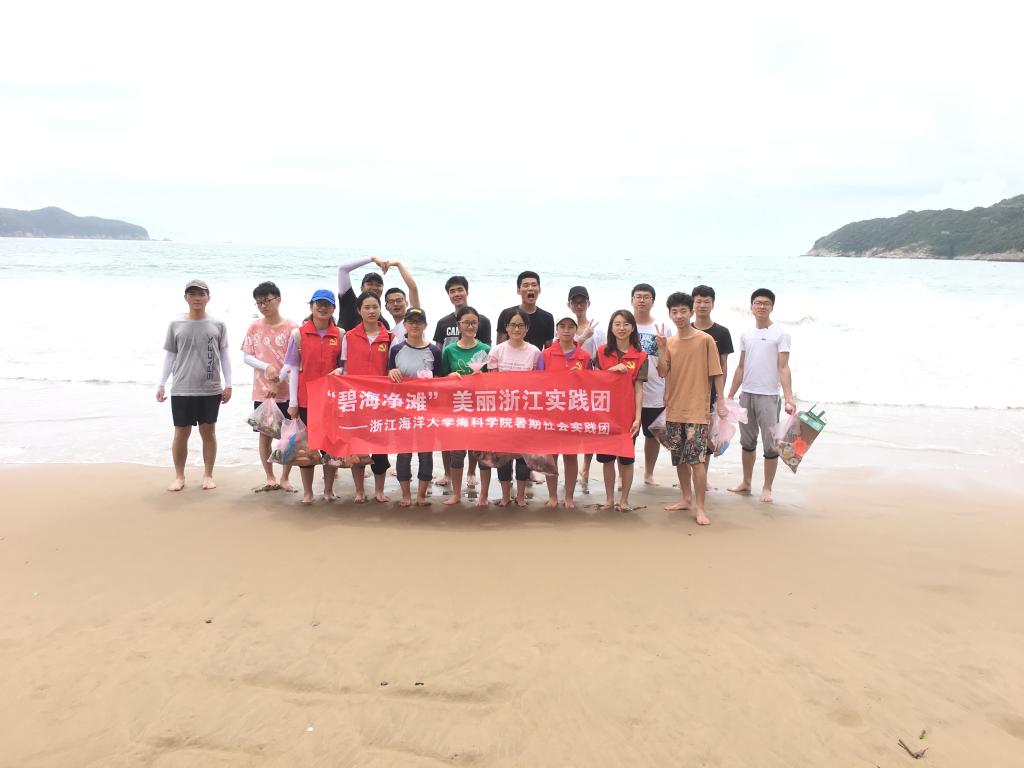 “碧海净滩”美丽浙江实践团在团委老师庄亿窈的带领下,来到舟山桃花岛——塔湾金沙开展海滩清洁活动。