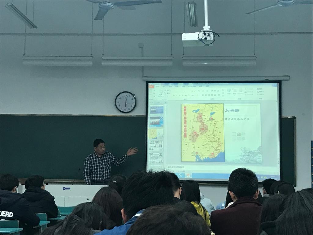 3月29日晚,马克思主义学院丁以德博士在教学楼137教室为海科学院学子讲述红色故事——井冈山会师是怎样实现的?旨在贯彻全国、全省思想政治工作会议精神。