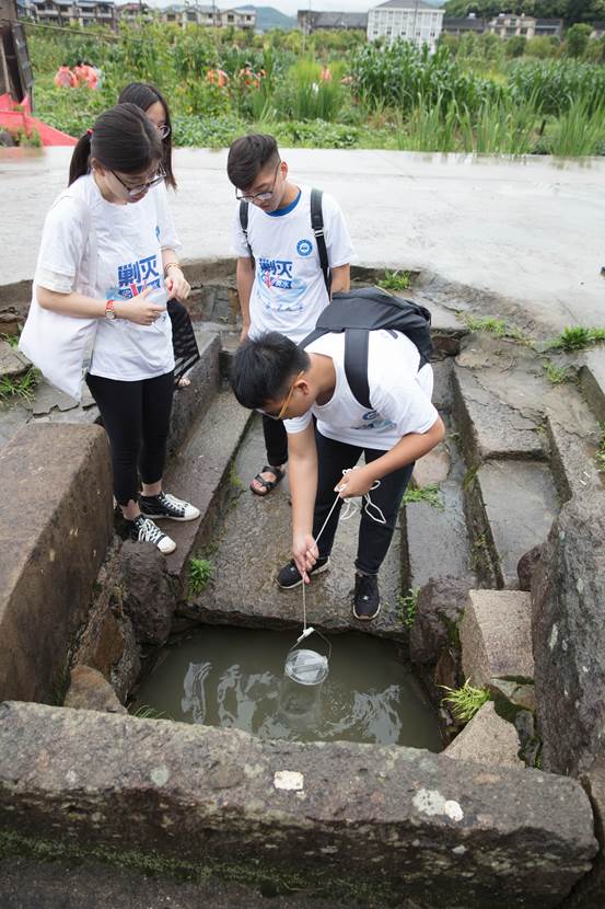 本次剿灭劣V类水活动,学院紧紧围绕学校党委的指示,利用学科优势,专业优势,开赴岙山附近的河流进行实地检测。小队人员寻找河流源头、田间沟壑、农村井水,用精密仪器进行分点采集水样,并将水样带回进一步的分析。