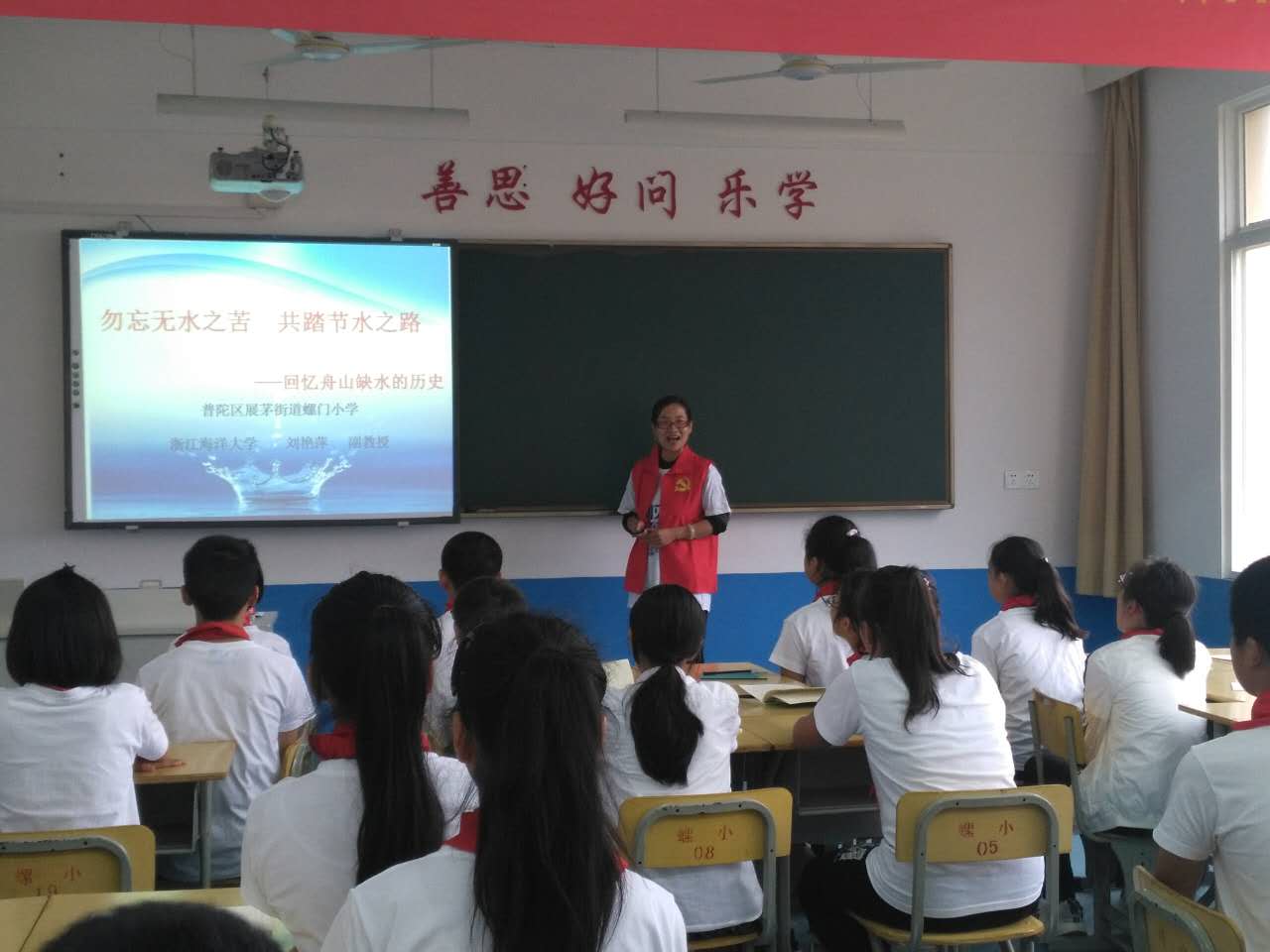 环境工程系刘艳萍副教授、分团委书记庄亿窈,来到普陀区展茅街道螺门小学开展“勿忘无水之苦 共踏节水之路——剿灭劣V类水科普进校园活动”。
