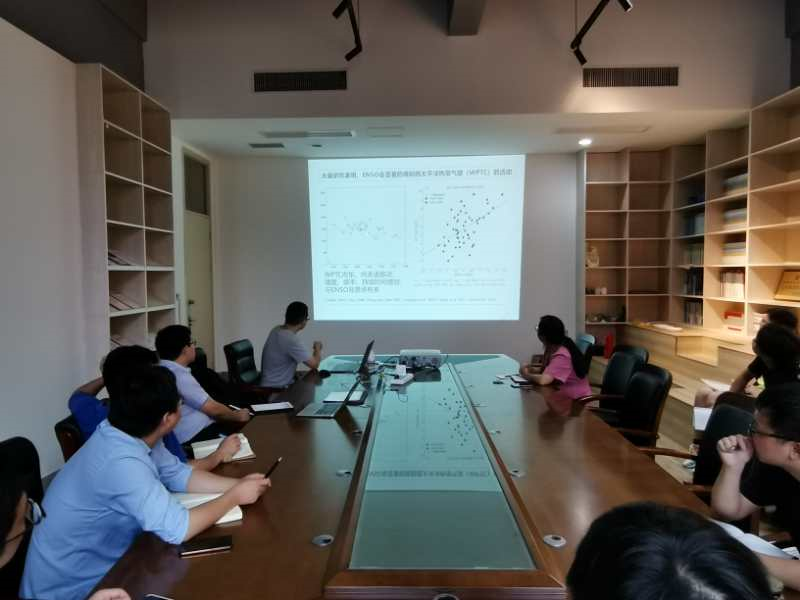 作学术报告,报告主题为《热带气旋对厄尔尼诺的影响研究》。学院二十余名师生聆听了报告。