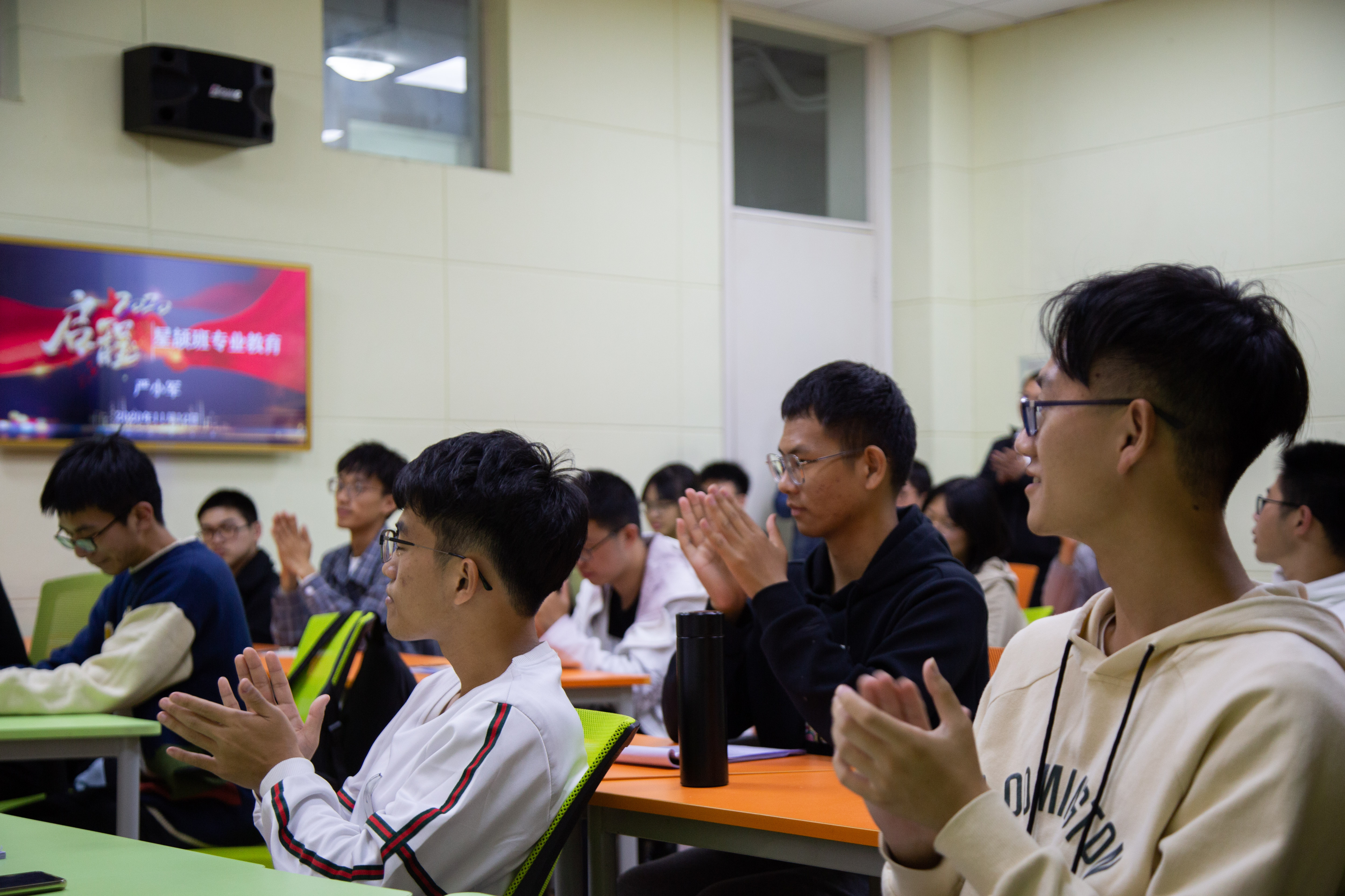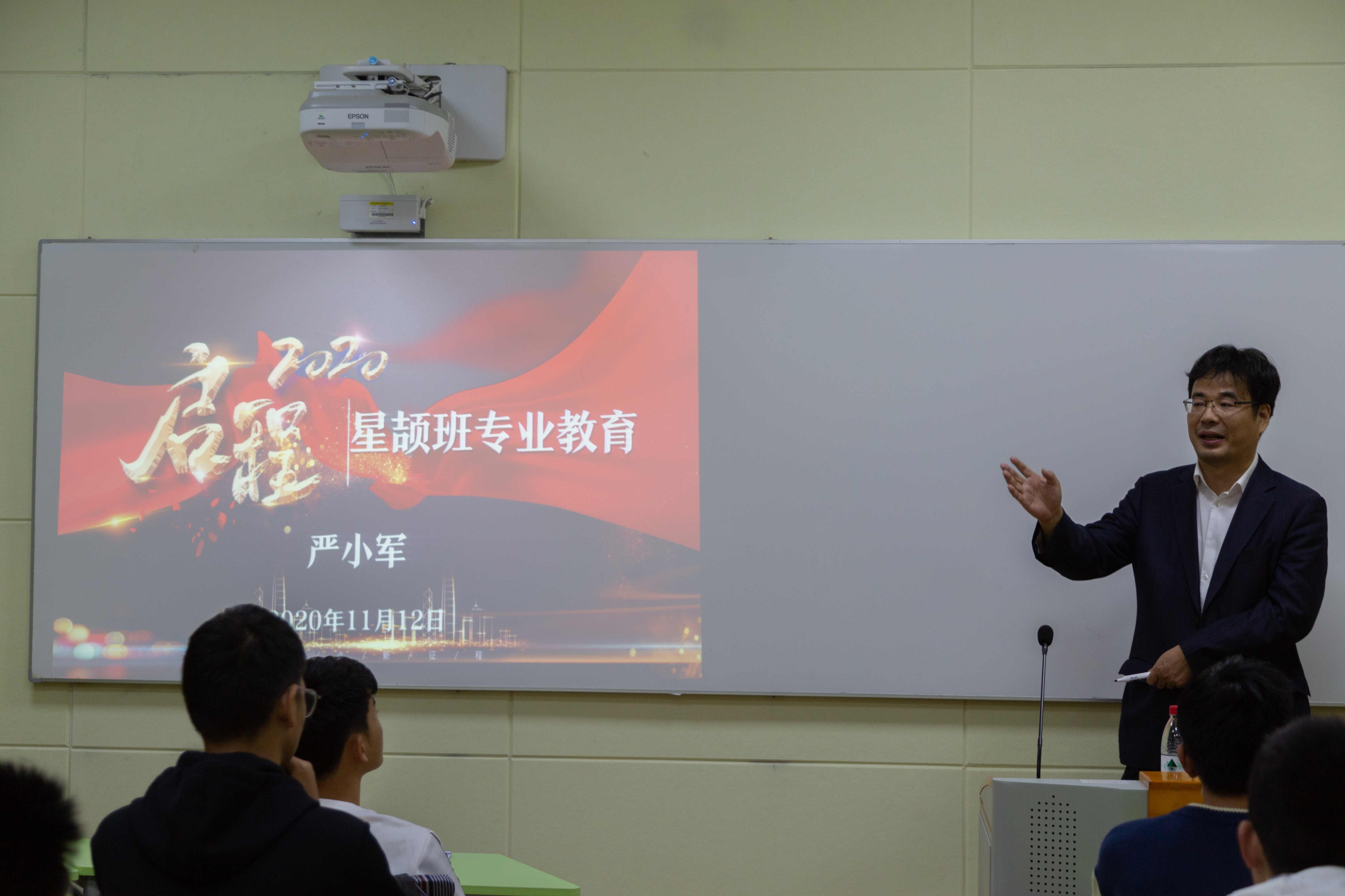 党委书记严小军在教学楼228智慧教室,为海洋科学类(星颉实验班)新生做专业教育。星颉实验班是为纪念以李星颉先生为代表的学校创始人、以培养高素质海洋科技人才为初衷而创立的,2020年共招收新生30名。