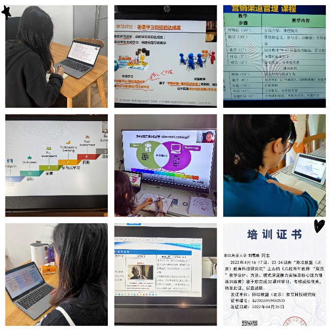 教师教学发展中心组织开展“提升教学质量,卓越教师养成”活动。 2022年4月16-17日及4月23-24日,何梦岚等26位教师利用双休日时间,参加了师培联盟组织的两期“双四”教学设计、方法、模式深度融合实操及核心能力锤炼训练营。