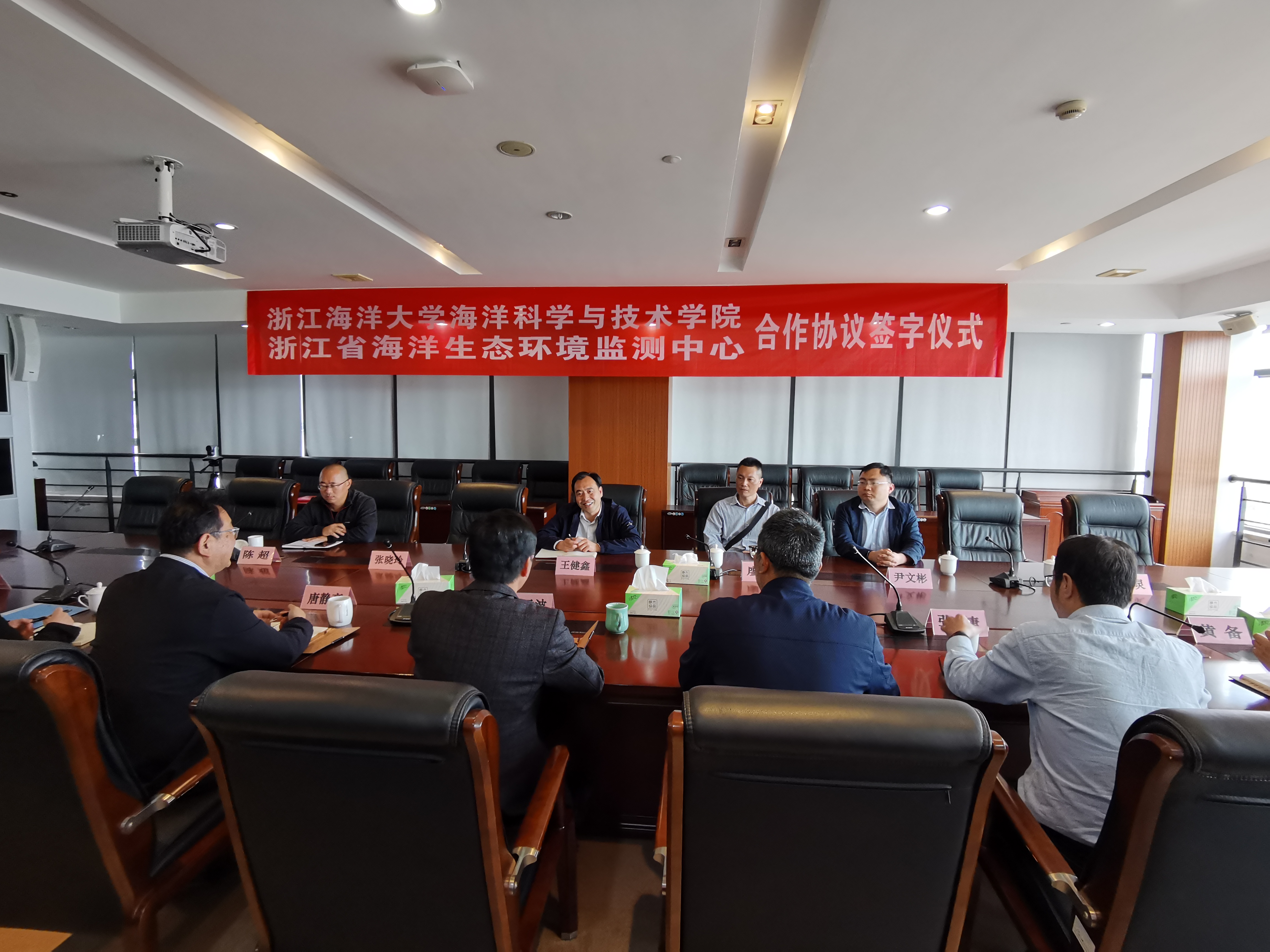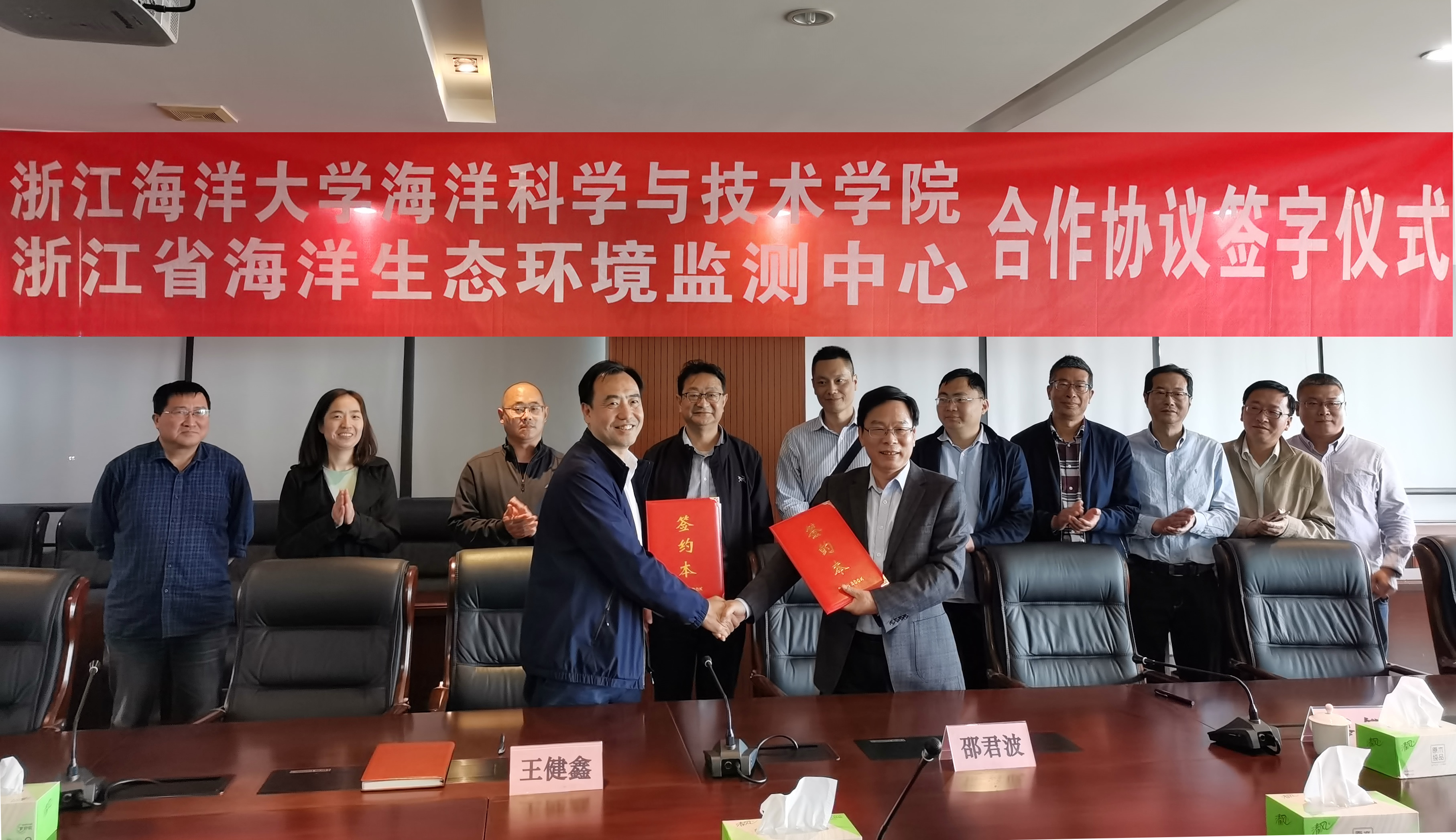 与浙江省海洋生态环境监测中心举行双方深化全面合作协议签约仪式。监测中心主任邵君波、副主任唐静亮、总工王益鸣及相关业务科室负责人,学院院长王健鑫、院长助理廖智和各系主任出席了签约仪式。