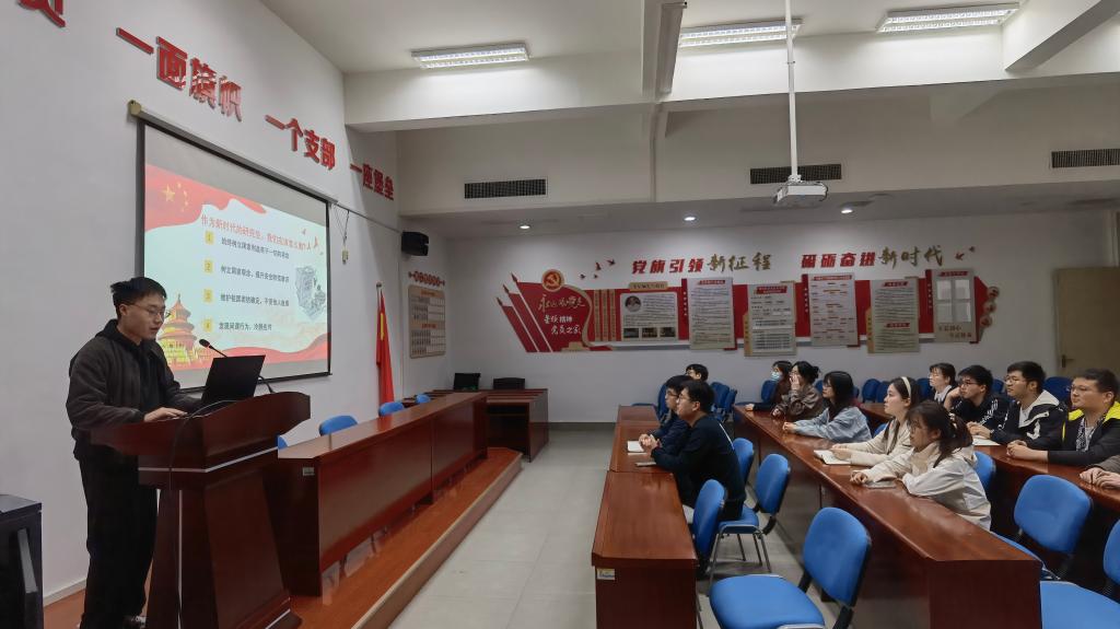 学院党委要求在党委理论学习中心组和支部理论学习中,在完成“第一议题”和规定内容学习的同时,每次确定“1 1”“中心议题”,其中1个理论议题、1个业务议题,并确定2名左右中心发言对象,开展专题学习、深度学习和研讨式学习。学生支部结合实际,将考研考公、就业创业、学科竞赛、论文起草等纳入学习、讨论的议题,以此促进理论学习与业务工作、学生学业等相融合,更好地以理论指导实践、推动工作、促进学生成长。