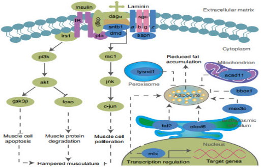 图1.比目鱼中部分基因的变异及其在扁平体轴发育中的可能作用机制