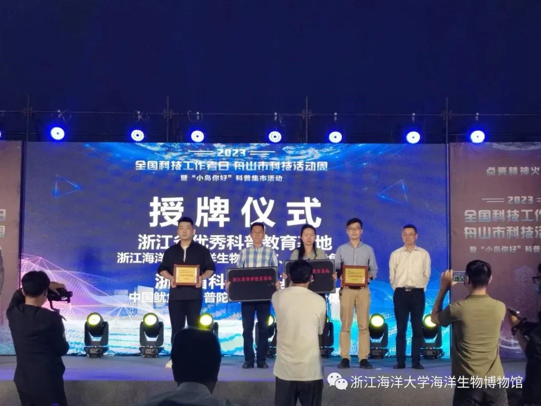近日,我馆荣获浙江省“优秀科普教育基地”荣誉称号,在舟山市科协于5月30日举办的全国科普日、舟山市科技活动周活动上,馆长陈健参加了本次授牌仪式。