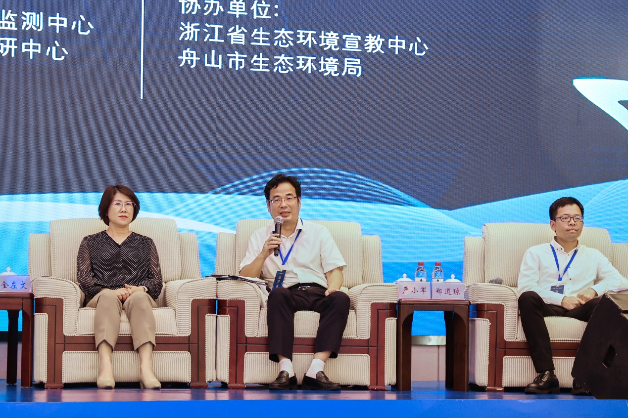 在“蓝海大家谈”环节中,第二海洋研究所潘德炉院士、国家海洋中心王菊英主任、中国科学院大学海洋学院副院长宋金明博导等各联盟单位代表进行了主旨演讲,就我国海洋生态环境保护与发展,碳中和与海洋碳增汇等进行了深入探讨。之后严小军研究员在海洋生态环境保护与发展座谈会上与参会代表进行了互动交流。在“护海讲堂”环节中,王健鑫院长做了题为“东海细菌群落结构演替特征及其环境适应性”的学术报告。
