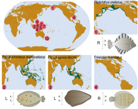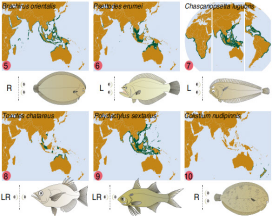 吕振明教授团队开展的鲽形目(又称比目鱼)鱼类起源及其体轴形成机制的研究,取得了重要进展。该成果以"Large-scale sequencing of flatfish genomes provides insights into the polyphyletic origin of their specialized body plan"为题,于2021年4月19日在Nature子刊《Nature Genetics》上发表,该期刊近5年的影响因子为30.35。