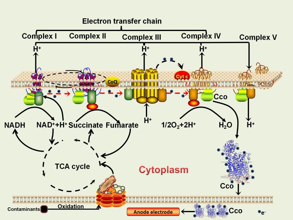 为开发更高性能的微生物燃料电池(MFC)阳极材料,更好了解阳极电极修饰对产电微生物群落丰度的影响,研究团队通过一步水热法制备了高性能的氮掺杂石墨烯阳极材料,在MFC运行过程中获得了较高的输出电压(498.6 mV)及功率密度(708.3mW/m2),同时COD的去除率也获得了显著的提升,高通量测序及荧光定量PCR结果显示,在氮掺杂电极生物膜上,产电微生物的相对丰度增加,编码细胞色素c氧化酶(Cco)的ccoN基因相对表达量明显上调。这说明在微生物燃料电池系统中,氮掺杂阳极电极材料有助于提升产电微生物的富集,提高了产电相关基因的表达,进而有效地提升微生物燃料电池的性能。