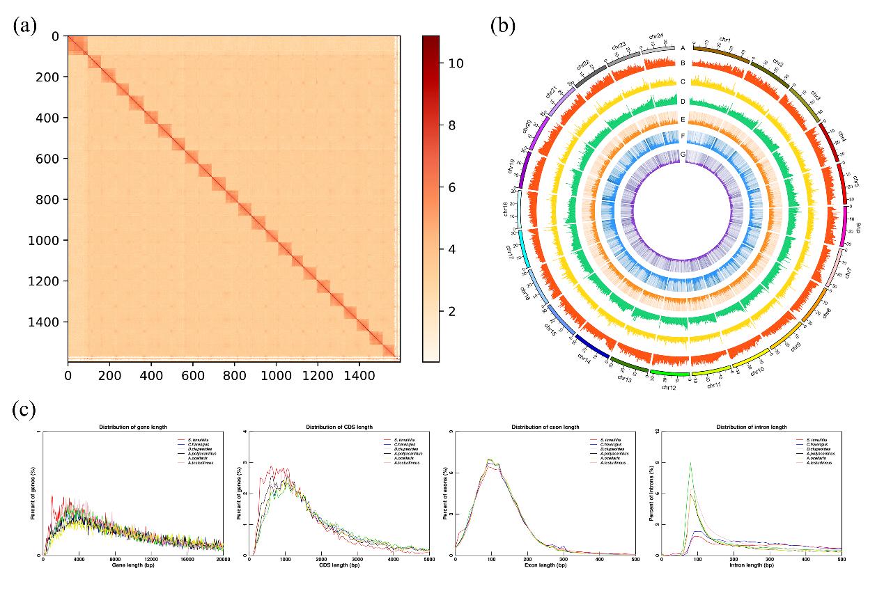 本研究利用Illumina、Pac-Bio和Hi-C技术将黄鲫基因组的contig序列锚定到24条染色体上,组装得到的黄鲫基因组大小为798.38 Mb,其中contig N50和scaffold N50分别为1.43 Mb和32.42 Mb。通过对包括黄鲫在内的15个物种进行比较基因组分析,确定了黄鲫的系统进化位置,显示黄鲫与刀鲚(Coilia nasus)的亲缘关系最近,分歧时间大约在56.1个百万年前,鳀科与鲱科鱼类大约在108.9个百万年前开始分化。通过基因家族扩张收缩分析,发现黄鲫基因组中显著扩张基因家族有171个,显著收缩基因家族有29个;另外与其他鲱形目鱼类相比,黄鲫基因组特有基因家族有146个。显著扩张和特有基因家族都在与免疫系统相关的通路中显著富集。黄鲫与近缘物种的染色体基因组共线性分析表明鲱形目鱼类在演化过程中发生了染色体融合或断裂事件,同时也发现了大量的染色体内和染色体间重排。