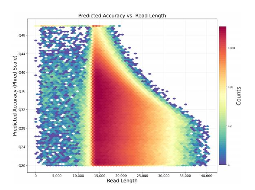 图1鳓鱼基因组三代 PacBio 测序结果质量与长度 2D 统计图