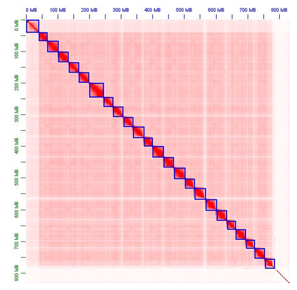 图2鳓鱼染色体基因组的HI-C相互作用热图