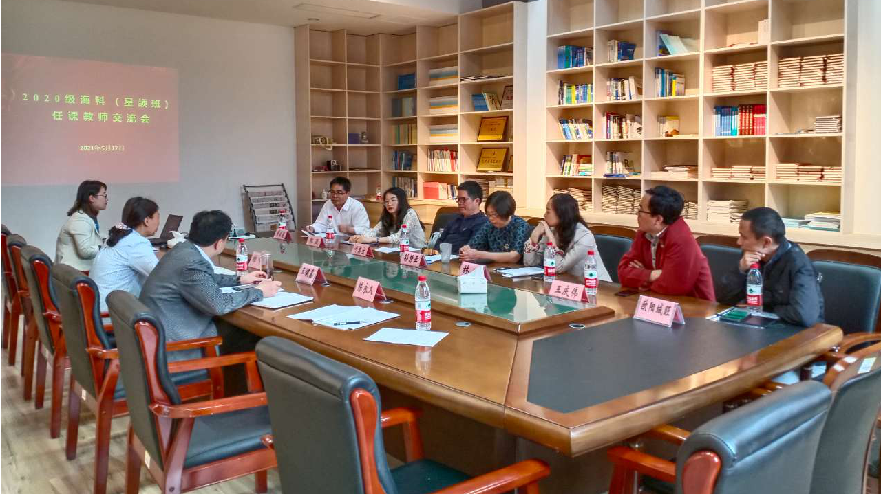 在海科楼146会议室举办了2020级海科“星颉班”任课教师交流会。会议特别邀请七位任课教师参加会议,分别是黄家庭、郭岚、叶其宏、孙静亚、林琳、王庆伟、欧阳城旺。会议由王健鑫院长主持,院长助理桂峰、“星颉班”班主任陈永久参加了本次会议。