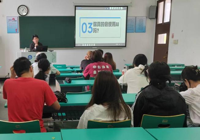 培训还特别设置了AI使用技巧分享环节。王硕老师通过实际案例,向同学们展示了提升AI使用效率的方法与技巧,包括如何优化提问方式、如何解读AI生成内容等实用技能。同学们积极参与互动,现场学习氛围浓厚。