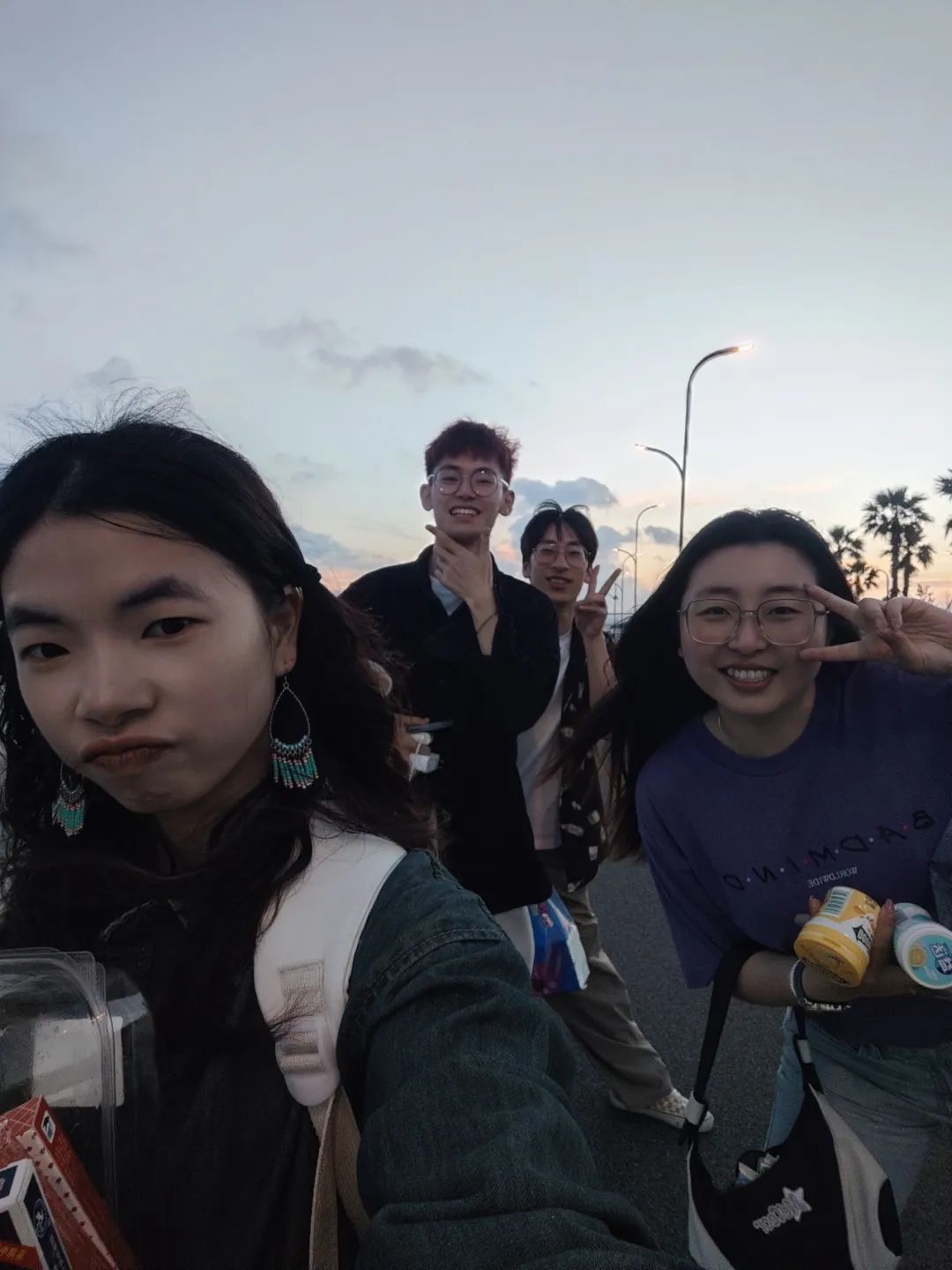 邱浩宇在揽月湖(左三)