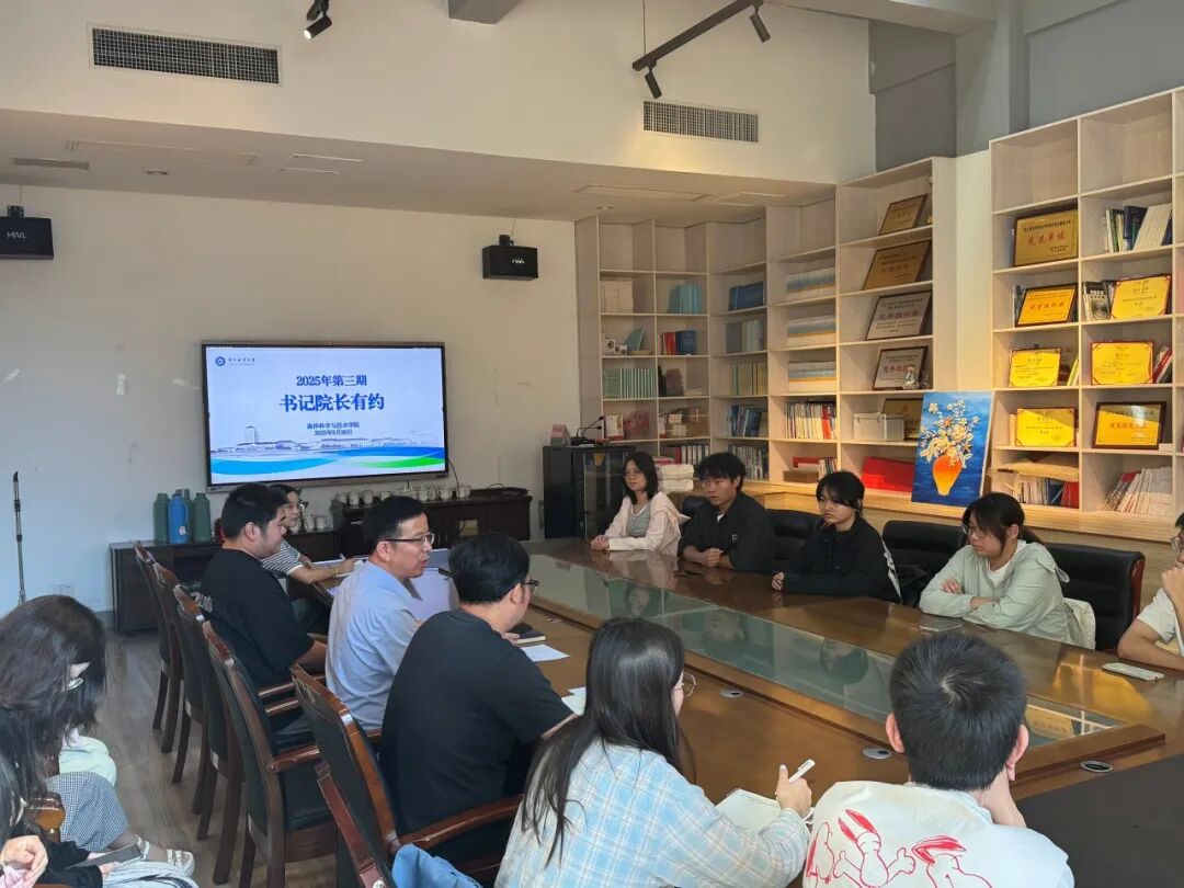 在海科楼146会议室组织第三期“书记院长有约”座谈会。学院党委书记林增丰、党委副书记胡金保与2023级各班级学生代表面对面交流,倾听学生心声,共话成长发展。