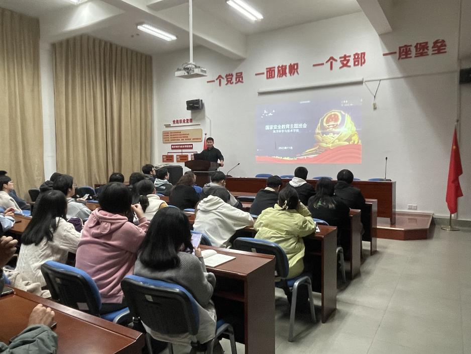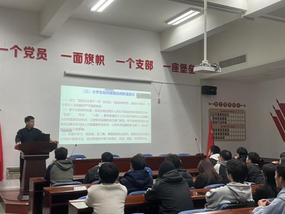 首先,菅康康老师说明了国家安全是指国家政权、主权、统一和领土完整、人民福祉、经济社会可持续发展和国家其他重大利益相对处于没有危险和不受内外威胁的状态,以及保障持续安全状态的能力;其次,菅老师结合舟山案例分享了公民在发现失密、泄密和窃密情况以及在境内外受胁迫或受诱骗时的应对措施;最后,菅老师对于在校大学生如何做好校园国家安全工作提出了几点要求,一是加强思想教育,树立国家安全观念,二是增强法律意识,及时防范和制止异动情况,三是加强制度规范,筑牢反间防谍的钢铁长城。