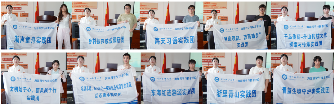 在海科楼141会议室举行2025年暑期社会实践安全教育暨授旗仪式。学院团委负责人姚宜玮、暑期实践团队队长和学生会干部参加活动。
