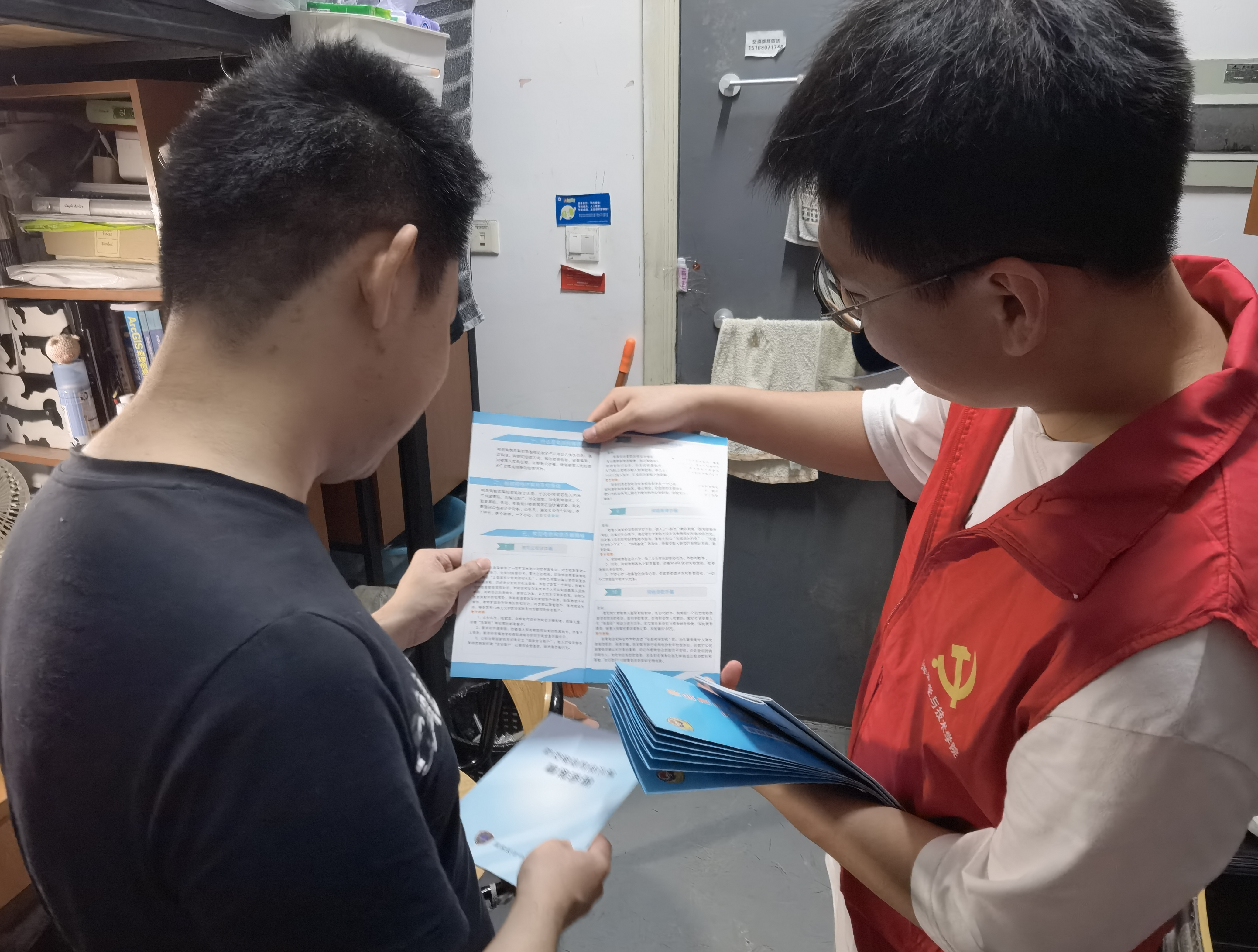 在此次志愿活动中,研究生第一党支部的党员志愿者们向同学们发放防范电信网络诈骗以及校园交通安全宣传手册,大力宣传各类与学生日常生活密切相关的安全防范知识。提醒大家不要轻信陌生人的电话和短信,注意防范犯罪分子可能利用的诈骗方式;告知同学们不要向陌生人透露自己的身份信息、银行卡密码等重要内容,辨识骗局,提高防范意识;在校园内外都要注重交通安全,自觉遵守交通规则,骑行电动车不可以载人;电动车需要在集中充电点充电,不可以私拉电线,更不可以在室内充电。党员志愿者们问询了同学们是否安装“国家反诈中心”APP,并指导使用。提醒同学们在发现可疑情况时,要及时拨打110报警,切勿轻信转账,让诈骗行为无处藏身。