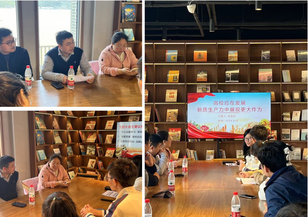 教工第二党支部还在岛上的欢喜书店召开了本月的党员大会,围绕中心议题和专题党课展开了学习和讨论。徐秀文同志就“高校在发展新质生产力中的作用”发表了精彩发言,支部书记朱庆玲同志为大家讲了“高校应在发展新质生产力中展现更大作为”的主题党课,迟长凤同志则分享了自己对学校过去五年变化的感悟,引发了热烈的讨论和交流。