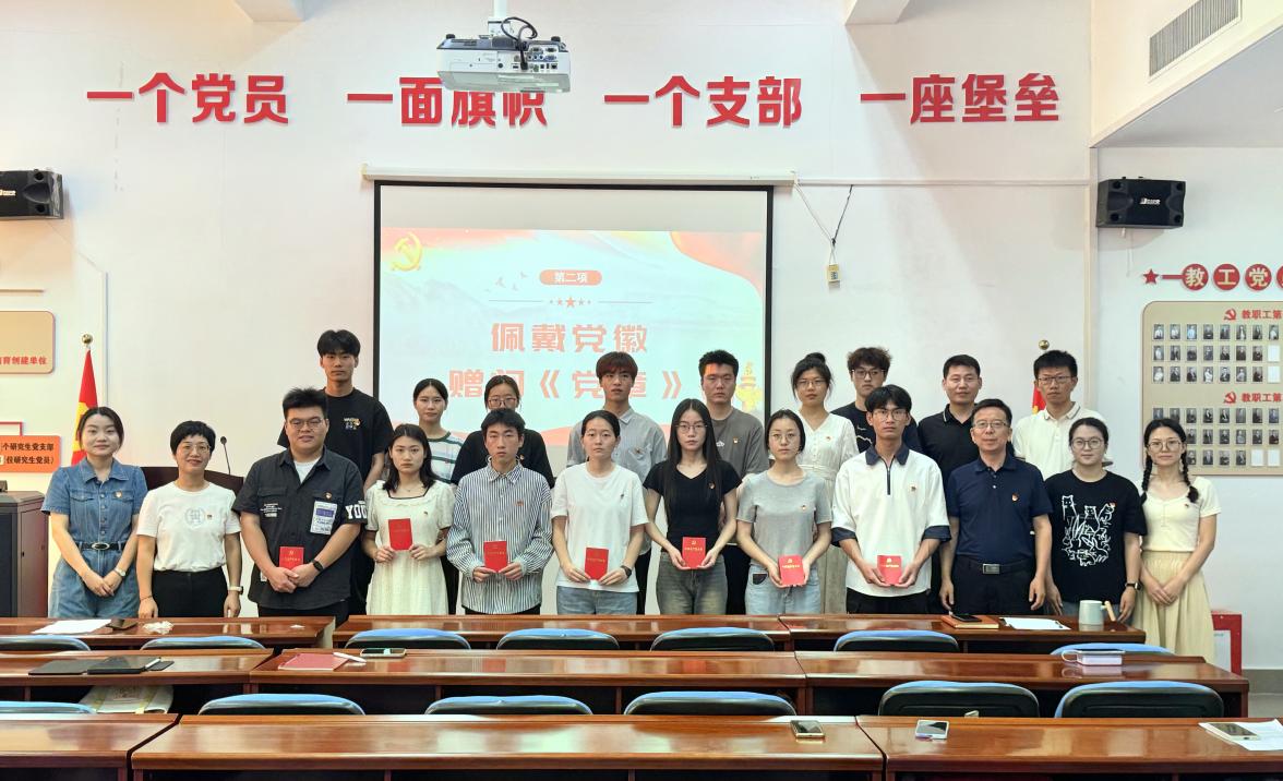 仪式在庄严的《国际歌》中拉开帷幕。主持人宣读了新发展预备党员名单,宣布了一批新鲜力量的加入。随后,林增丰和何桂明为新党员佩戴党徽,并赠阅《党章》。