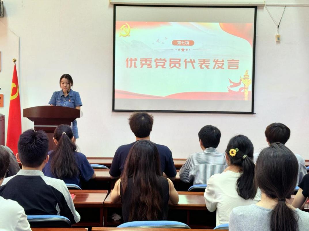 优秀党员代表、研究生第三党支部书记邢紫怡做了交流发言,分享了她在党组织中的成长经历和未来的奋斗目标。