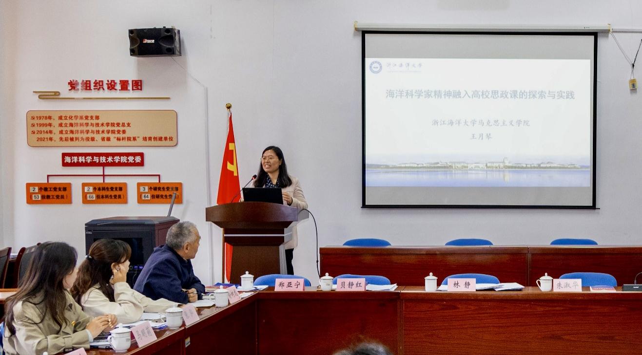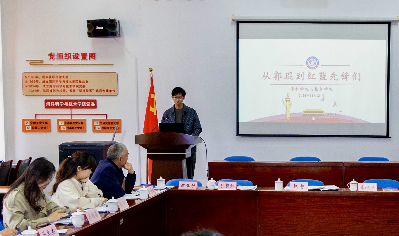 为深入贯彻落实习近平总书记关于海洋强国战略的一系列重要论述,传承弘扬科学家精神,教育引导广大师生积极投身海洋强国建设,今年,海科学院从新中国海洋事业发展的历史进程中,遴选出百位榜样人物、优秀代表,编印了《红色信仰 蓝色梦想——百名海洋科学家精神读本》。为用好这一读本,马院党总支与海科学院党委将组织100名师生党员,持续开展百名海洋科学家精神宣讲,并将这项活动纳入马院“一院一品”党建体系。仪式上,马院教师党支部书记王月琴与海科学院研究生二支部党员陶晨智分别围绕以科学家精神赋能思想政治教育、中国南极科考事业的开拓者——郭琨的故事作“双百”活动首讲。