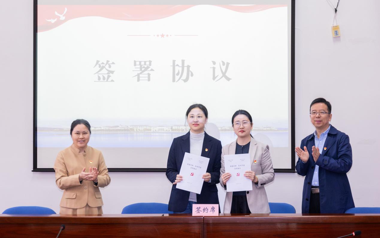 仪式上,贝静红介绍了马院院情概况及“一院一品”党建等情况,林增丰介绍了海科学院院情概况及党的建设等情况,双方就推进下步合作落地进行了互动交流。郑亚宁、张晓林分别代表马院党总支与海科学院党委签署“党建引领 结对共建”合作协议,协议确定了组织共建、阵地共创、人才共育、课程共融、课题共研等6个方面共建内容,为双方合作明确目标方向、奠定重要基础。