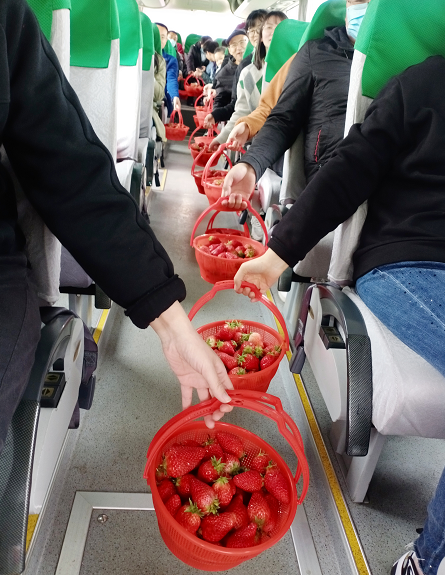 参观活动结束之后,工会组织教职工前往舟山有机草莓基地开展草莓采摘活动。