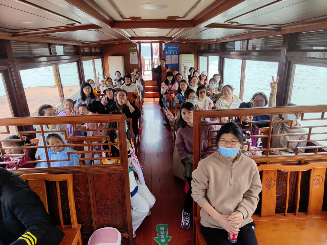 东钱湖,位于宁波城东郊外,是浙江省著名的景点,被郭沫若先生誉为:“西湖风光,太湖气魄”。在这里,老师们乘游船游览被春色包围的东钱湖,随着游船的缓行,细软的春风拂面,犹如闯进了一幅画。