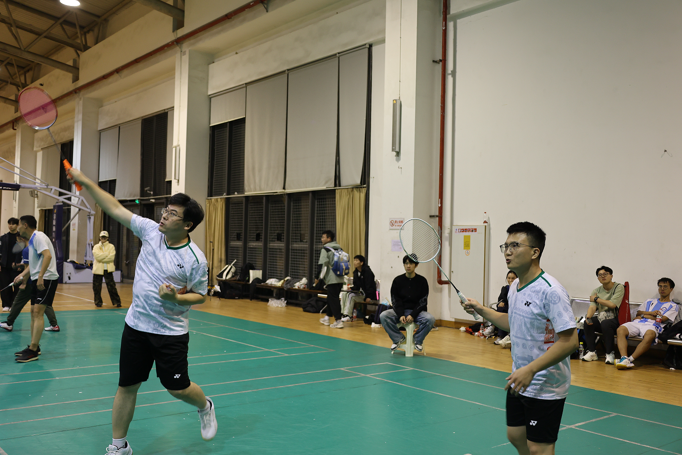 赛场上,每一次精彩得分都伴随着队友的欢呼,每一次偶然失误也收获了充分的理解与鼓励。“胜则举杯相庆,败则拼死相救”——正是这样的团队文化,铸就了队伍最坚实的底气。多位老师带病出战,将学院集体荣誉置于首位。学院领导更是亲自挥拍上阵,与队员们并肩作战。他们的全情投入,极大激发了队伍的士气,让每一位队员在赛场上都充满信心与力量。