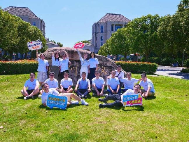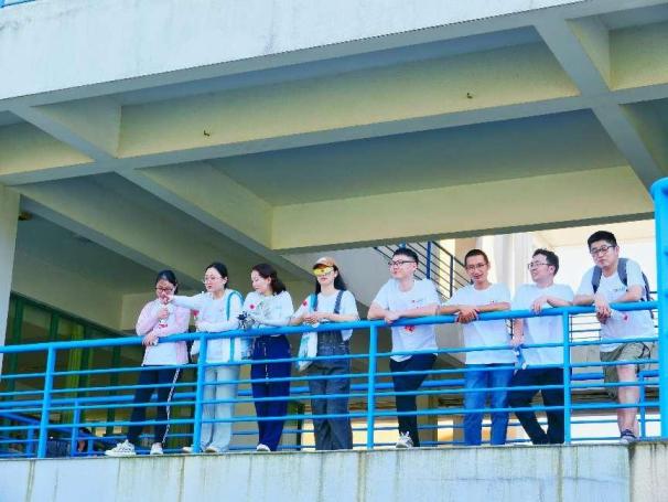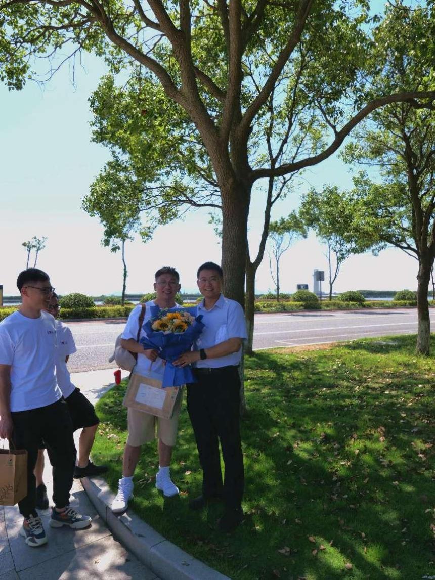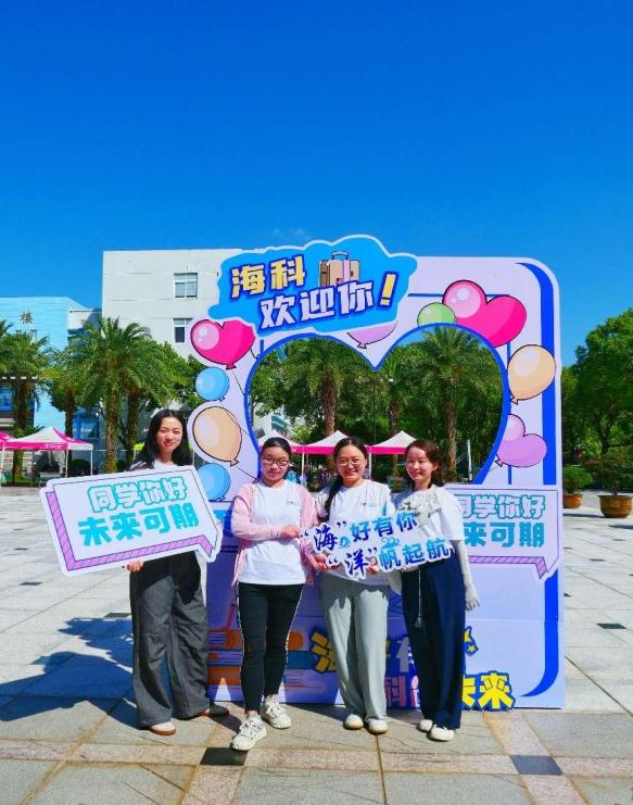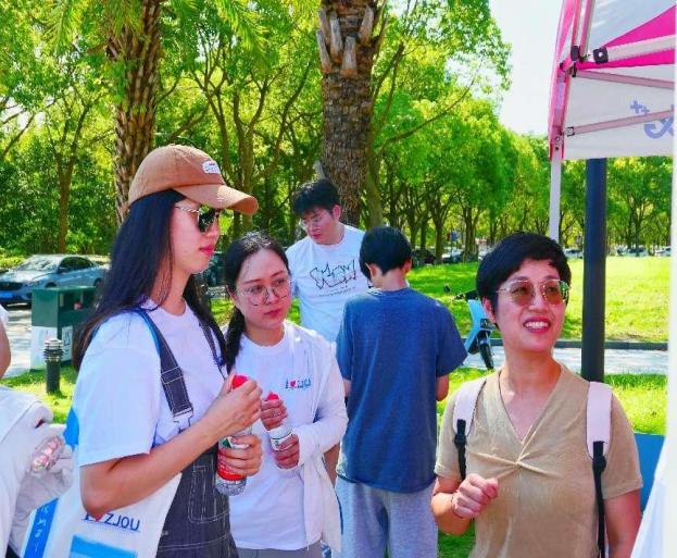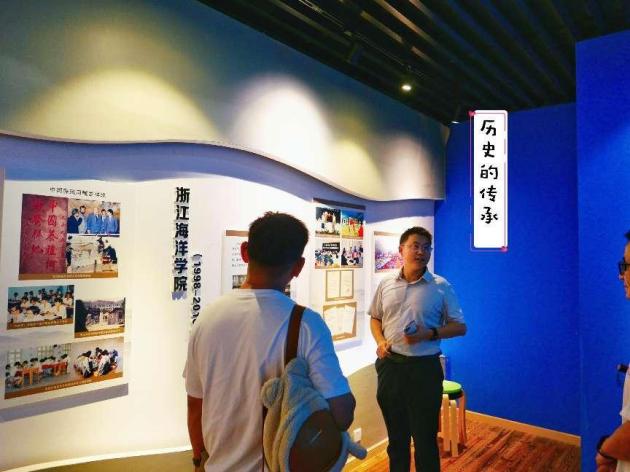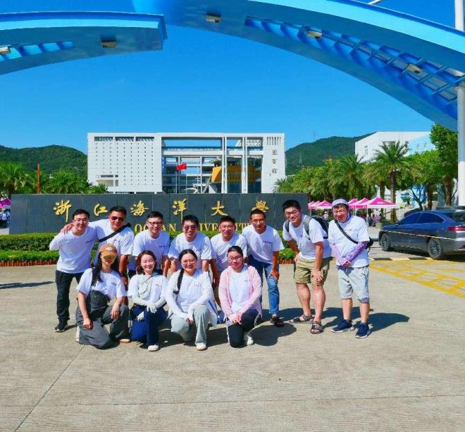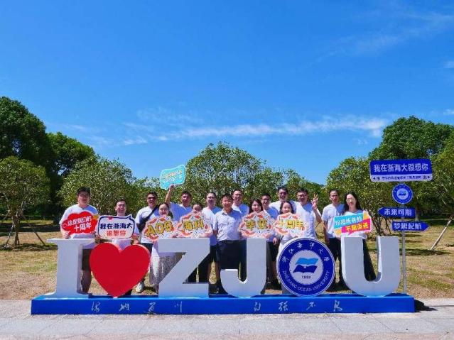 定海校区,并在学校门口处附近午餐。下午两点,校友们换好定制纪念服装,便前往定海校区参观。恰逢2023级本科生入学报到时期,校友们在学校大门口及海科学院迎新现场拍照留念,受到党委副书记何桂明老师的热情接待。9日下午,校友们在定海校区一边参观校园风光,一边互叙同学之情。在图书馆、文心湖、第二食堂等区域拍照留念。