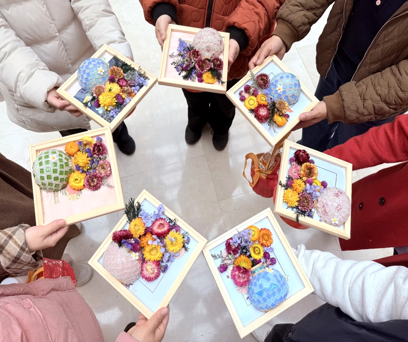 活动当天,“海芙蓉”巾帼文明岗成员齐聚一堂。先学习了干花相框的制作技巧,然后从色彩搭配、构图设计到材料应用,到如何将干花、枝叶等自然元素与创意结合,打造出一个个独具匠心的艺术作品。在轻松愉快的氛围中,大家纷纷动手实践,挑选干花、构思布局,用巧手将平凡的材料转化为一幅幅精美的立体画作。
