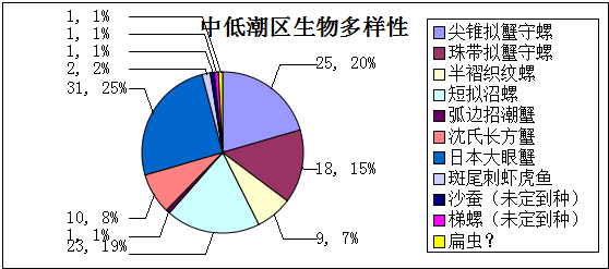 其中,泥滩中低潮区11种;中潮区11种;高潮区2种。具体分布如图1、图2所示: