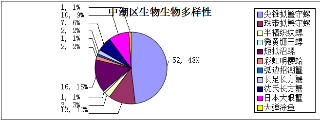 共采集到大石花菜等藻类3种、等指海葵等刺胞动物3种、单齿螺等软体动物18种、粗腿厚纹蟹等甲壳动物4科6种以及2种软体动物卵囊,见表4。并绘制出岩礁相生物多样性分布柱形图。