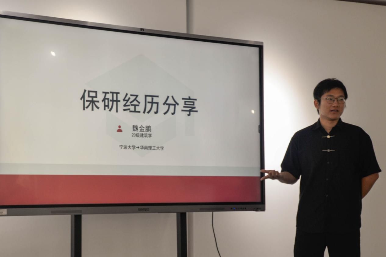 活动开始,2024级美术与书法专业研究生、宁波大学第八届研支团成员张心怡同学讲述了自己的支教经历和感悟,张心怡同学指出,支教是自己人生中的一次宝贵经历,体现的是一种对社会的责任和担当,希望更多的同学发扬奉献精神,加入到学校的研支团队伍。2020级建筑学专业魏金鹏同学分享了大学的学习经历以及保研经验。魏金鹏同学指出,要培养学习的专注力,做好短期中期长期规划,按照规划一步一个脚印坚持下去,最后自然能水到渠成。