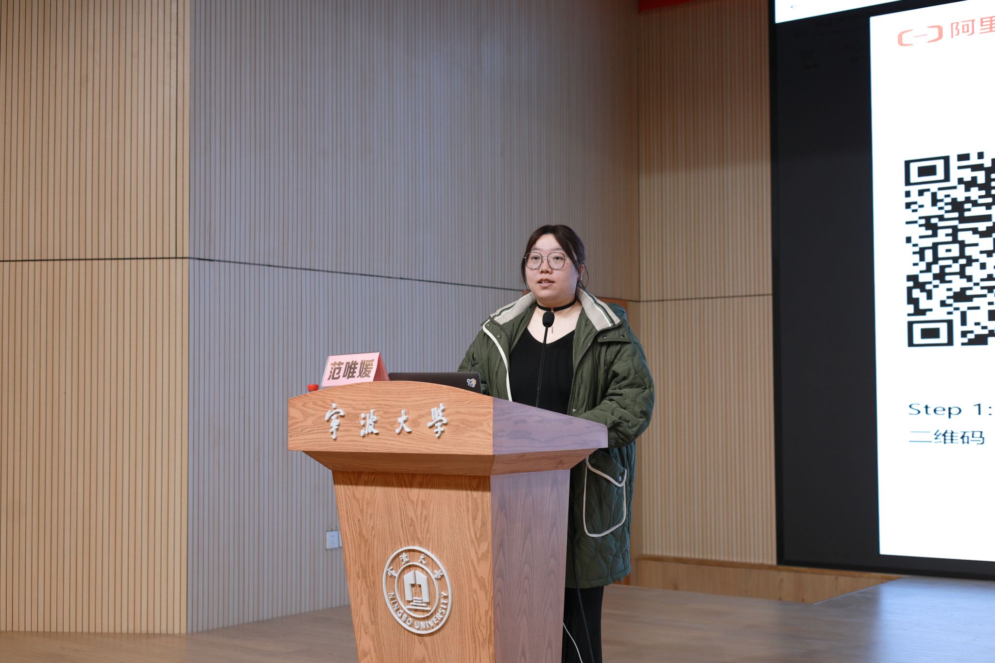 第一部分讲座结束后,阿里云高校合作专家、云工开物高校 AI + 课程负责人范唯媛为同学们简要介绍了平台的使用方法。在活动现场,阿里云团队为参与师生发放了算力资源包,并开通线上艺术训练营通道,助力学生实践 AI 设计。