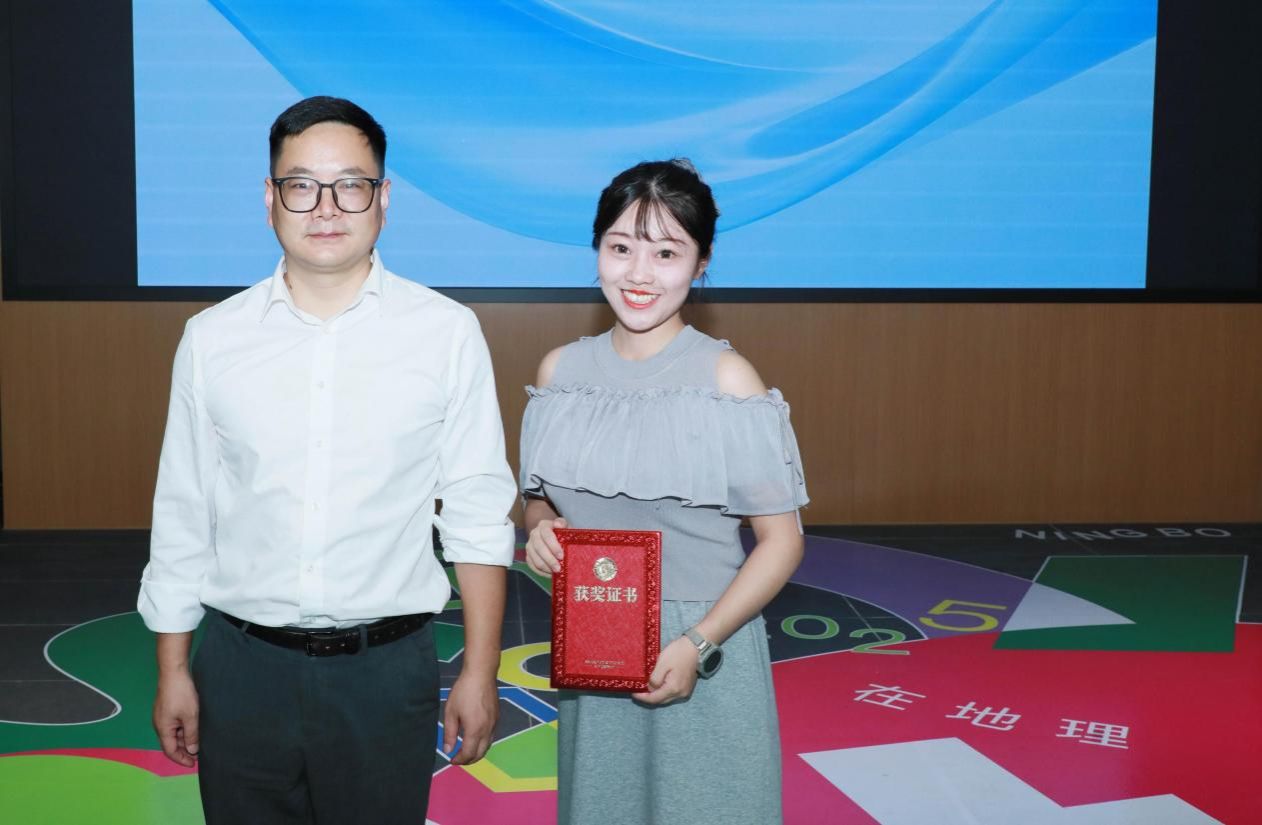 帅康电气研究院工程师徐子轩为三等奖获奖同学颁奖