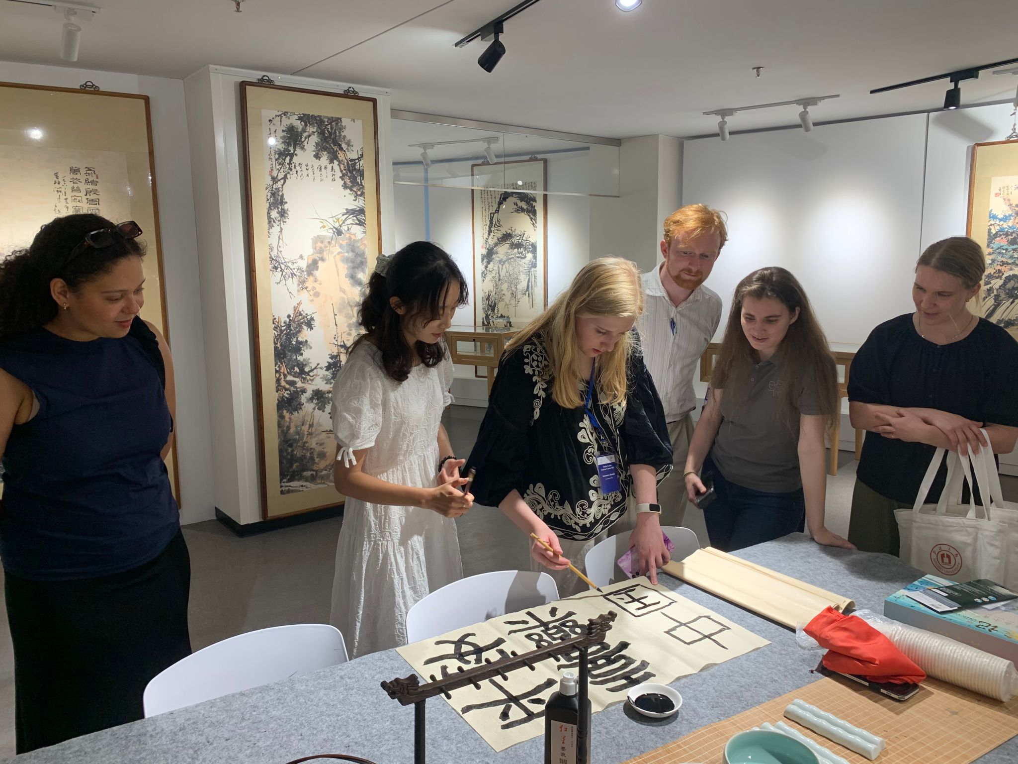 7月18日下午,来自北欧中心的师生代表三十余人参观了潘天寿艺术教育思想馆,学院“风华叙美育宣讲团”成员作讲解。
