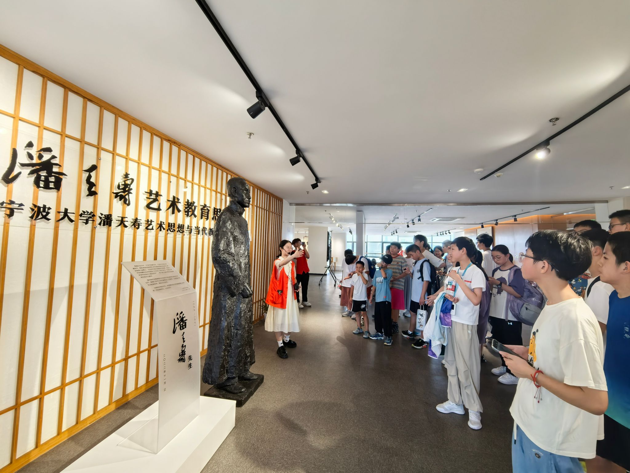 8月12日,阳光炽热,万物葱茏。我院关工委承办了学校关工委的美育活动,指导我院“风华叙”美育宣讲团带领第八期宁波科技新苗培养计划的150余名学子怀揣着对艺术的好奇与热情,走进了关工委美育教育基地———潘天寿艺术教育思想馆。在学院“风华叙”美育宣讲团成员的讲解下,一场兼具文化浸润与审美启迪的美育之旅拉开帷幕,为朝气的科技小新苗们打开了一扇感受艺术魅力、涵养人文素养的窗口。
