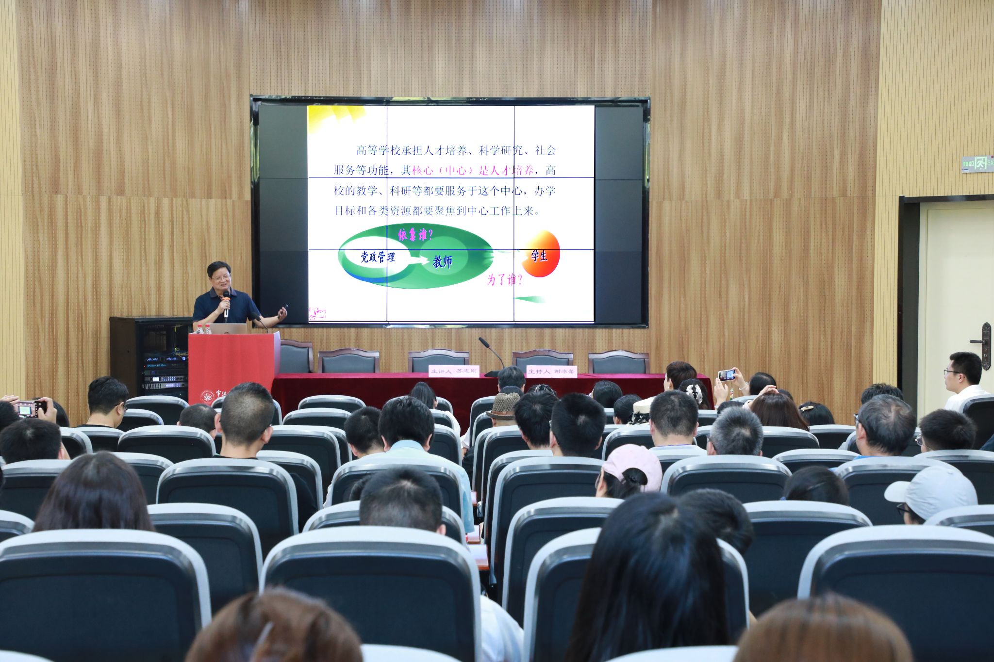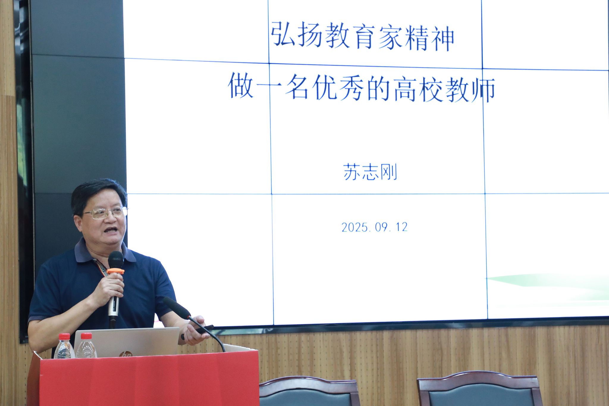 为庆祝第41个教师节,弘扬教育家精神,加强新时代高素质专业化教师队伍建设,9月12日下午,由宁波大学人事处、党委人才办主办,潘天寿建筑与艺术设计学院党委牵头,联合商学院党委、体育学院党委、物理科学与技术学院党委、数学与统计学院党委共同承办的“弘扬教育家精神,做一名优秀的高校教师”专题讲座在宁波大学物理学院龙赛报告厅成功举行。讲座邀请了苏志刚教授主讲,学校200余名教师参加了讲座。