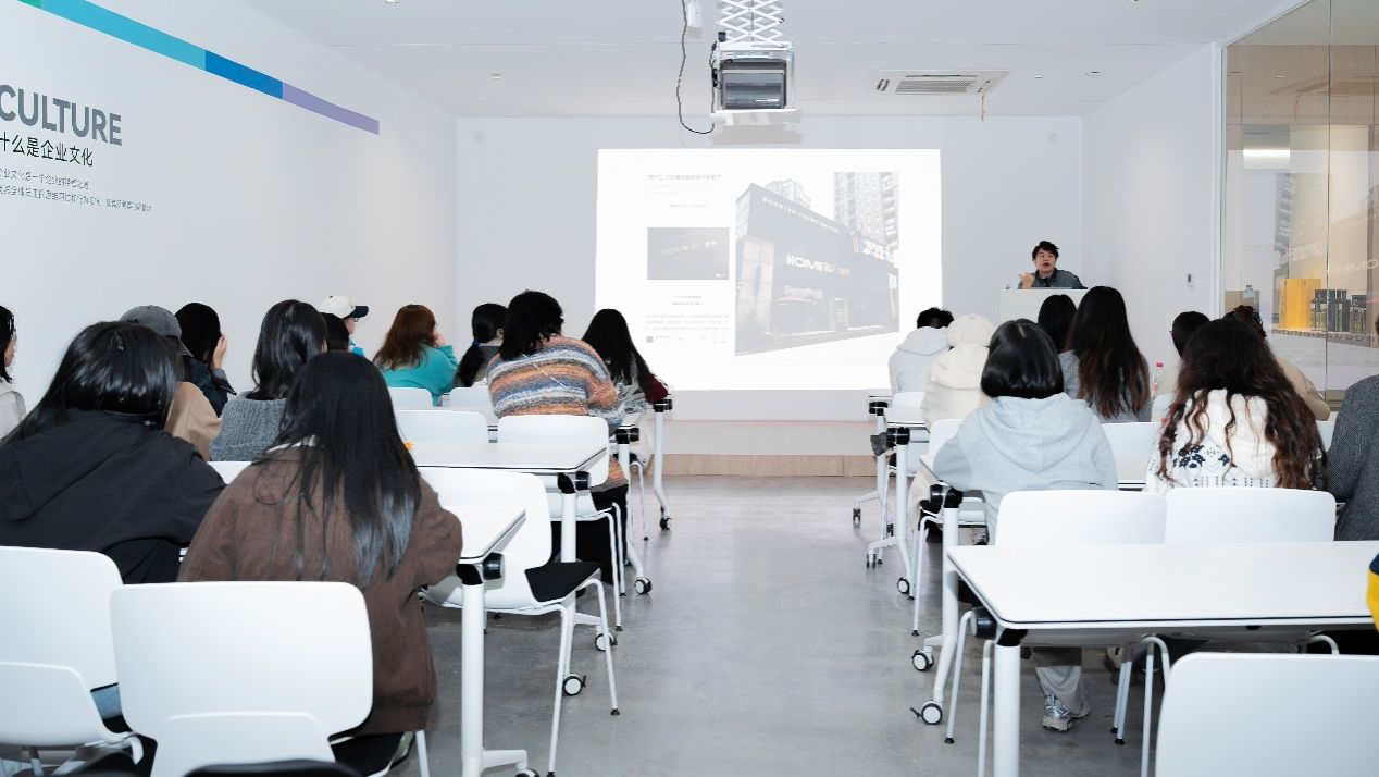 为助力大学生拓宽专业视野,搭建校企协同育人桥梁,11月14日,潘天寿建筑与艺术设计学院组织师生走进宁波诺维亚家居有限公司,开展“企业家创业经验分享暨访企拓岗”活动。学生工作负责人(挂职)洪蓉蓉,辅导员吴越、张明慎及近40名大学生参加了此次活动,诺维亚家居有限公司总裁、学院校友会会match长郑贵安与同学们深度交流,传递创业智慧与行业力量。