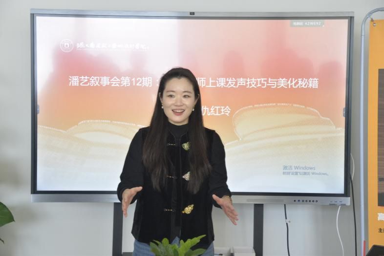 为切实帮助广大教师解决授课过程中的用嗓难题,科学缓解声带疲劳,进一步提升课堂语言表达的感染力与吸引力,11月20日下午,学院党委特邀请声乐表演博士仇红玲走进学院第十二期“潘艺叙事会”,开展主题为“高校教师上课发声技巧与美化秘籍”的分享活动。本次活动由学院党委和关工委联合举办,吸引了近二十名教师参加,由学院党委书记韩雯琛主持。