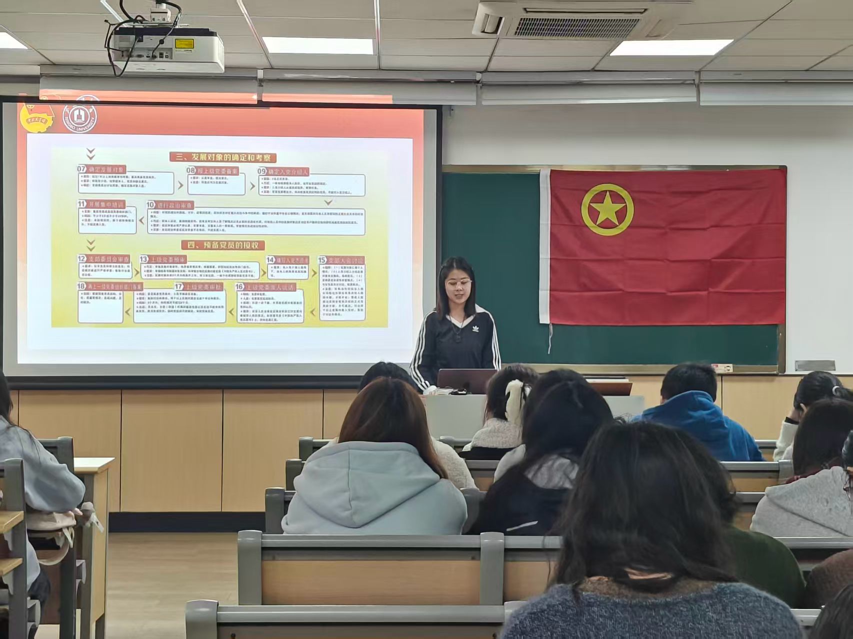 11月11日,开班仪式在东区6-101教室举行,学院团委副书记程锦、新发展团员、新任团支书及入团积极分子近50人参加,开班仪式由张彧芃同学主持。开班仪式上,程锦老师强调了共青团工作在高校思想政治引领中的重要作用,并希望同学们珍惜学习机会,坚定理想信念,锤炼过硬本领,努力成长为一名“政治坚定、德才兼备、素质全面”的优秀青年马克思主义者。