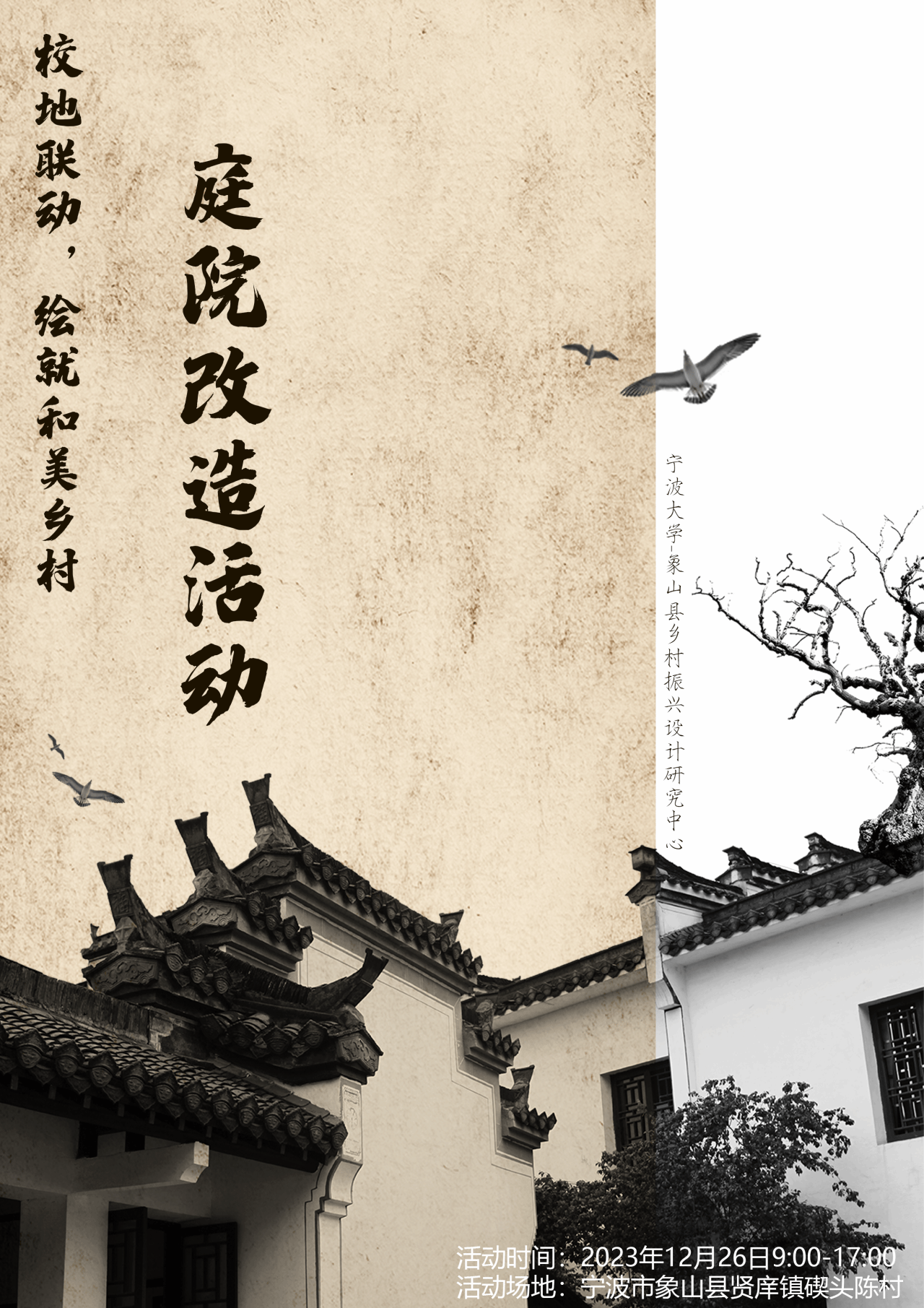 2023年12月26日宁波大学——象山县乡村振兴设计研究中心举办美丽庭院改造活动,该研究中心旨在推动校地联动以响应乡村振兴政策,达到艺术赋能乡村的目的。