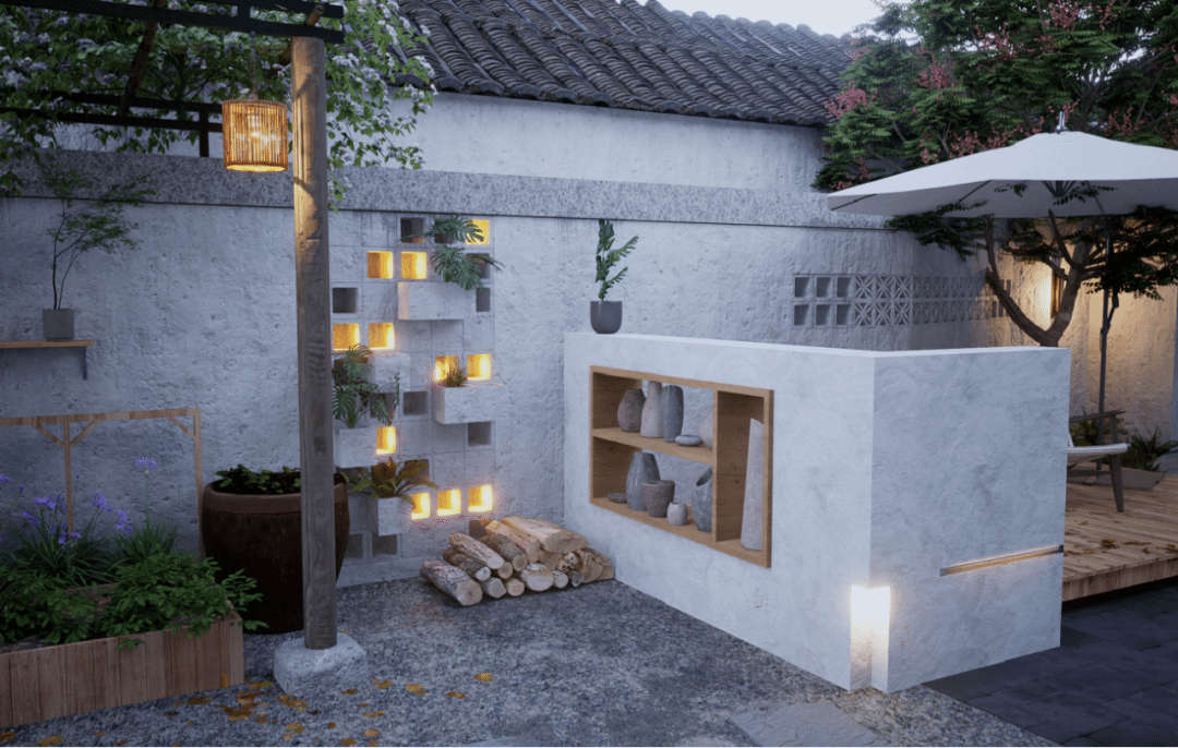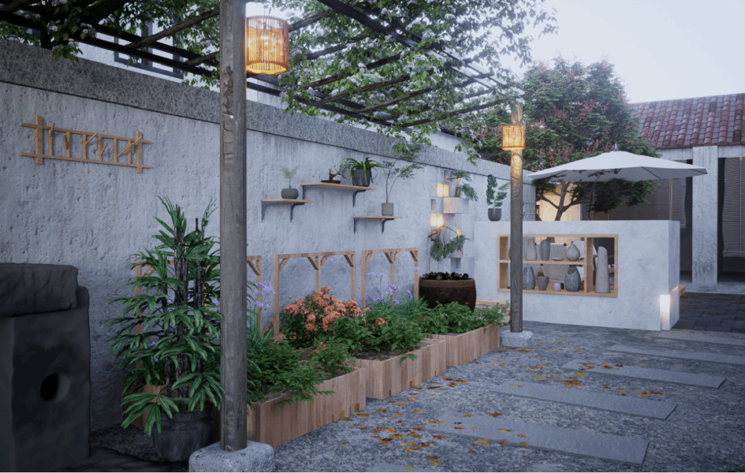 环境与家居设计系陶锋老师带领同学们实地参观象山县的案例庭院,并为学生具体讲述庭院中所运用到的材料、植物等,让大家了解庭院改造方面可以运用的设计手法和设计规范,并从中吸收归纳以便运用到后续对碶头陈村中的庭院改造中。通过专业老师的指导,同学们按照村民的意向对庭院进行改造升级,并取得了初步成效。(以下是效果图的展示)