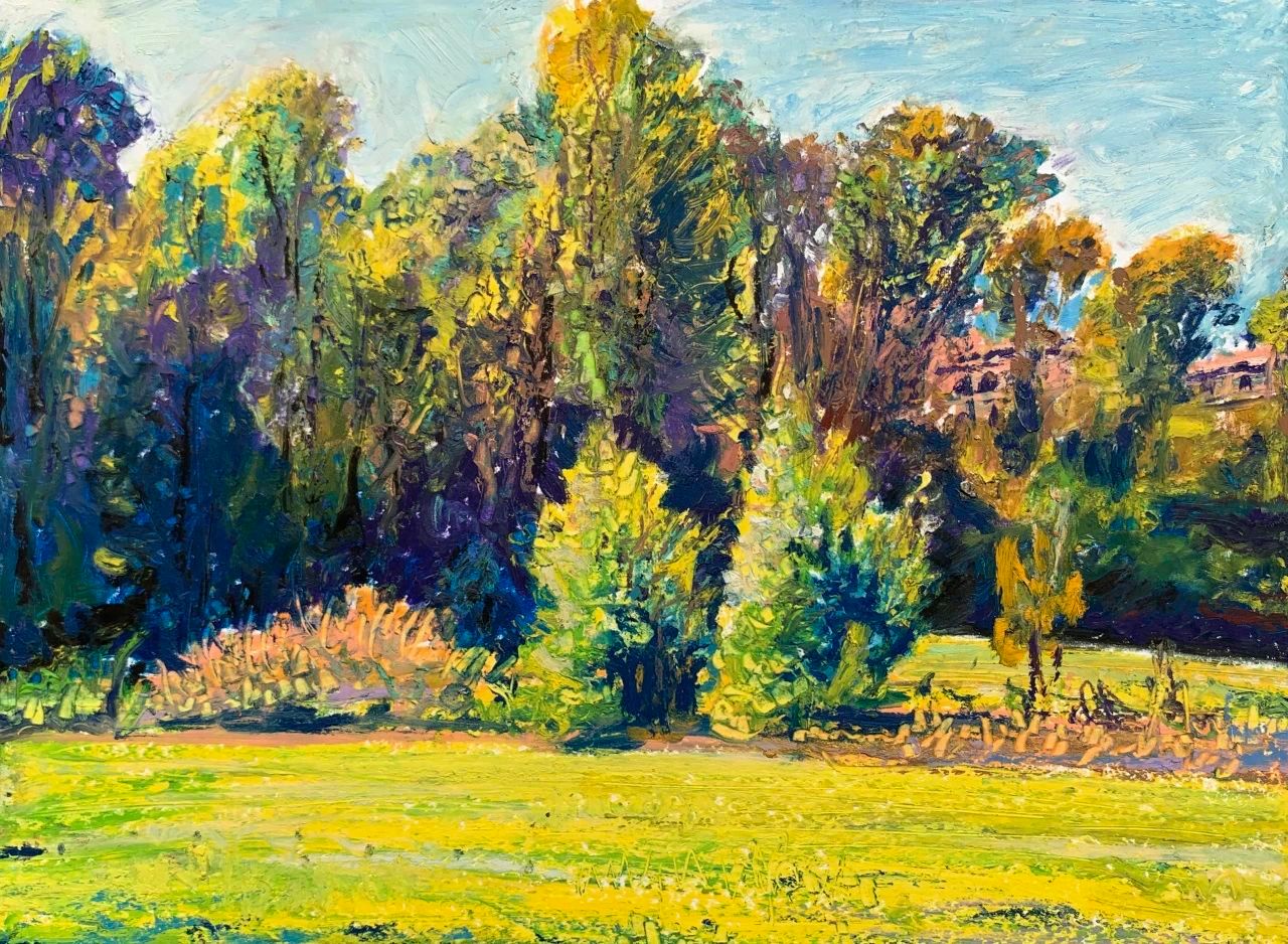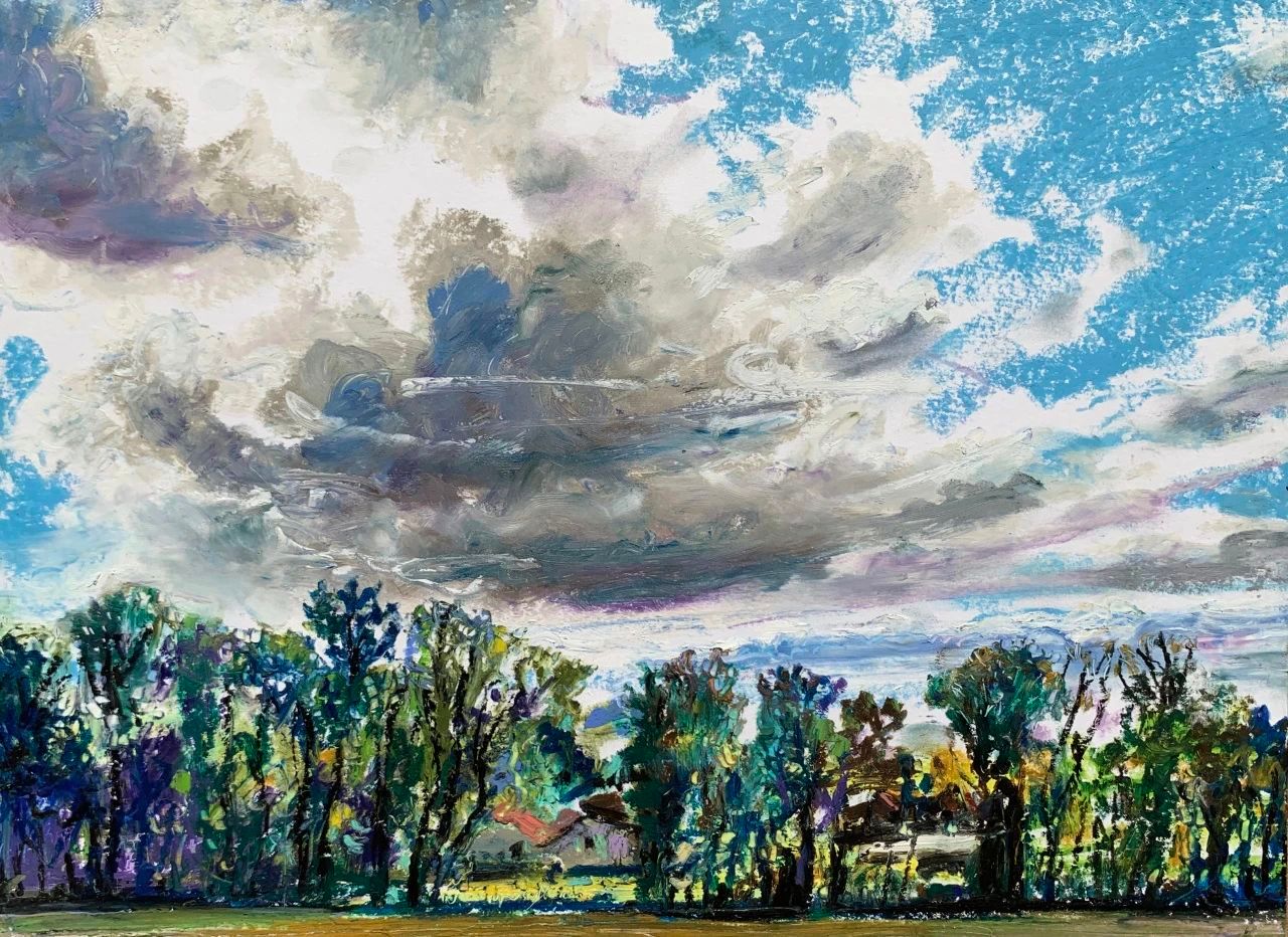 又是一个晴好的天气。我从家门出来,一直走到了田野里,一排树木从草地上延伸到山坡后面,山坡后面有什么我并不知道,云也从坡后面冒出来,朝头顶的天空蔓延开来,云朵就好像雪山一样耸立起来,看上去既柔软又十分洁白,让我很想爬到那上面去。山坡上云的暗影缓缓移动,等我走到山坡上,我看见一条河流在平川处划出一条亮白的细线。仿佛土地裂开了,露出了下面的一面镜子。这镜子从未将我的面孔映射出来,它只映照天空里的一切。山坡下有一群村舍,红褐各色房顶下白墙突出,络绎不绝在草地上,被树林围绕着,周围山坡黄绿相间,单纯而鲜明。这土地是如此肥沃,好像充满了生长的欲望。我走在田野上,麦天的金黄色铺展开来,又很快地收割了,露出土地的颜色,很快又被新的绿色所覆盖。而树木从夏天的浓绿到秋天的红绿褐黄,诉说着自然重复变化的绚烂之美。我曾经在这片麦田边上傻傻地站着,像守望者看着金色的麦海,这样我的站姿就有了稻草人一样的意味。